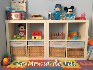 Una vez vacía la habitación de cosas innecesarias dejé las estanterías que ya teníamos para almacenar juguetes. Estas son de Ikea, las podéis encontrar aquí.